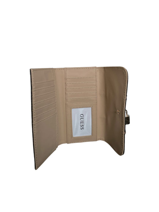 Cartera Larga GUESS Monograma Café con Broche Dorado